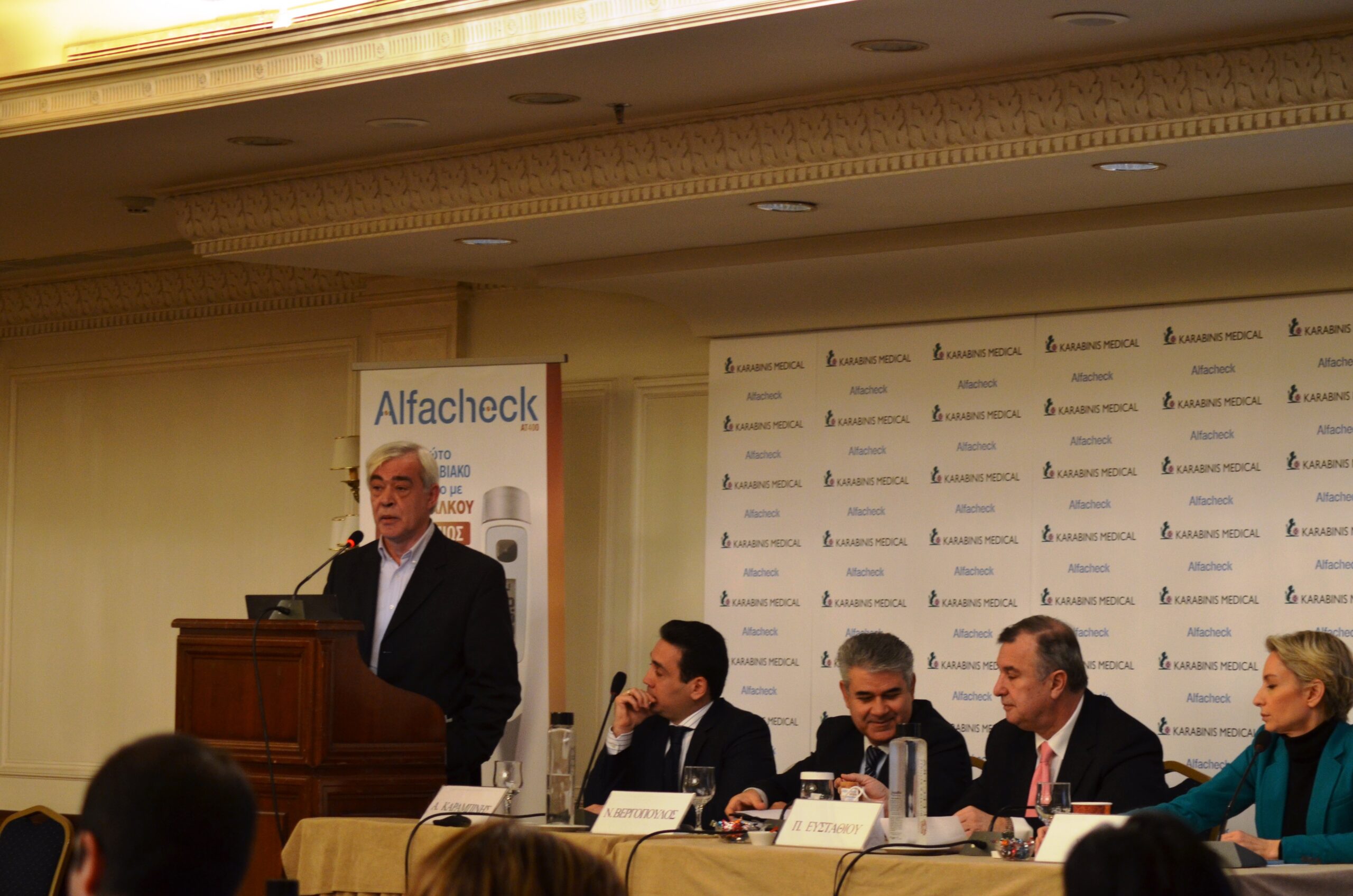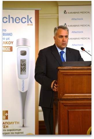 Athens, January 16, 2015. KARABINIS MEDICAL presented during a Press Conference, the Alfacheck Antimicrobial AT400, the first thermometer with antimicrobial copper worldwide. Through its technological application, patented worldwide by KARABINIS MEDICAL, the Alfacheck antimicrobial thermometer helps to create safe conditions for medical thermometry, not only to families but to the entire “healthcare chain” (doctors – nurses – patients).