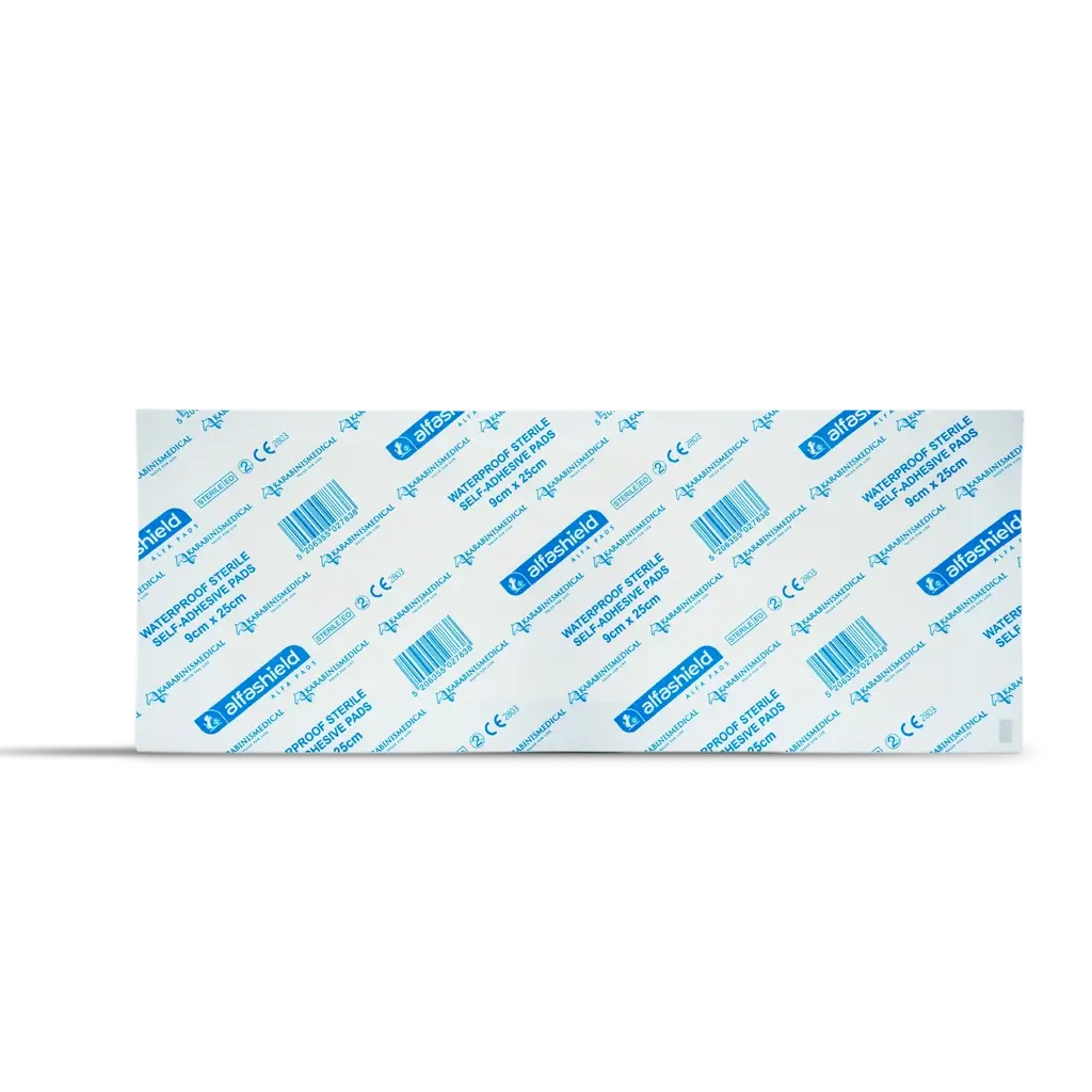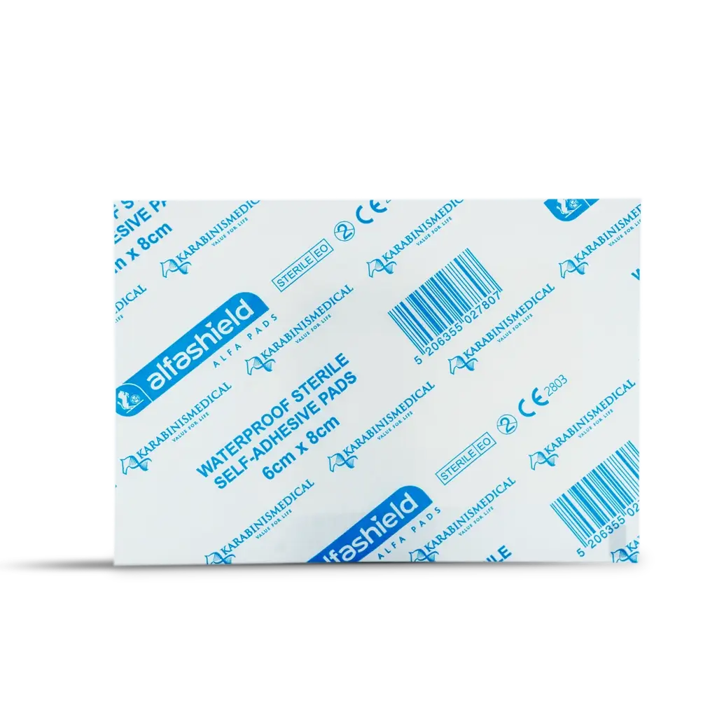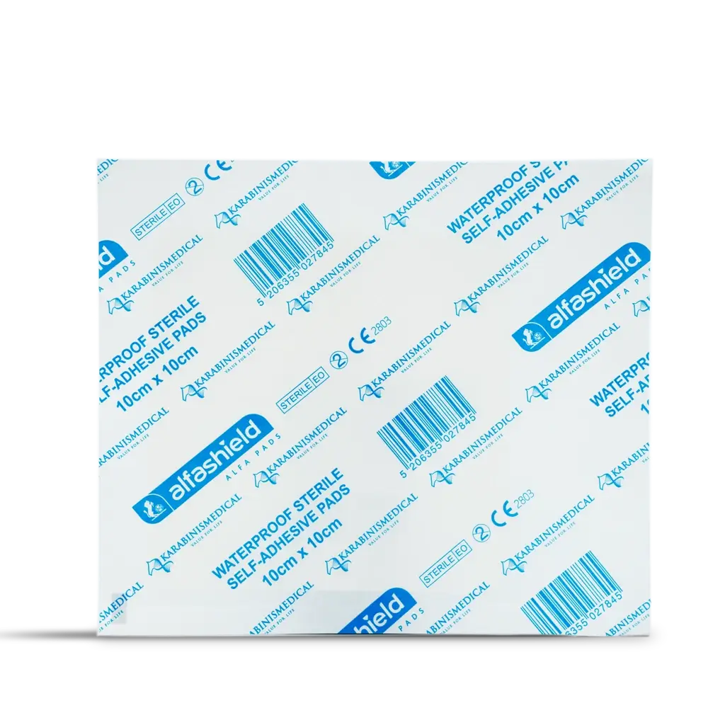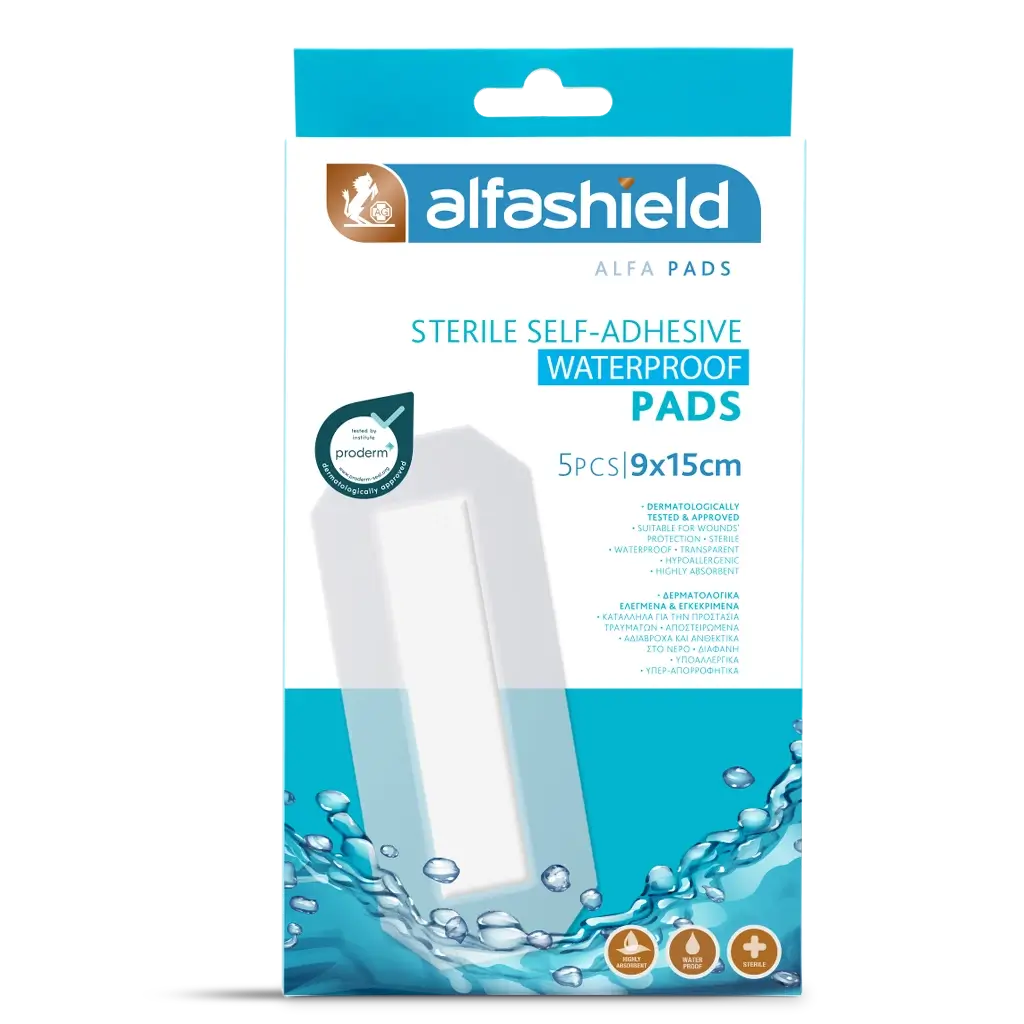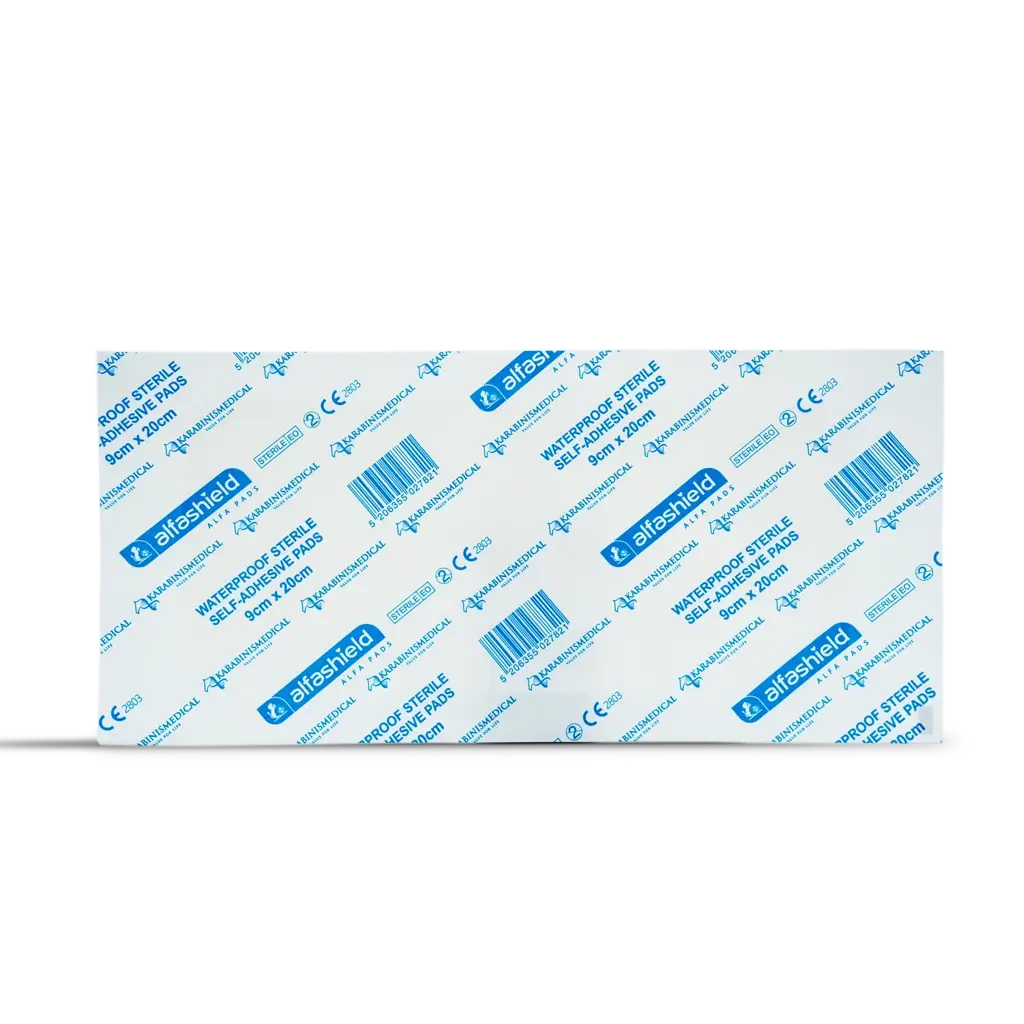 Alfashield | ALFA PADS Sterile Self-adhesive Pads Water-Proof are made of film PU, with non-adherent surface coming in contact with the wound. The pads are highly durable and do not cause irritation and allergic reactions. With a strong adhesive which seals all around the wound, they remain stable and protect ideally the wound. The non-stick wound pad protects gently the wound. They have a thin absorbent pad with a protective film that helps absorption of wound exudate. These water-proof and breathable pads keep the wound dry and are ideal during washing, showering, bathing and swimming.